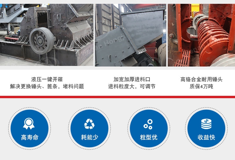 3.破碎比大,出產(chǎn)自動(dòng)化程度高,耗能少,破碎比大;